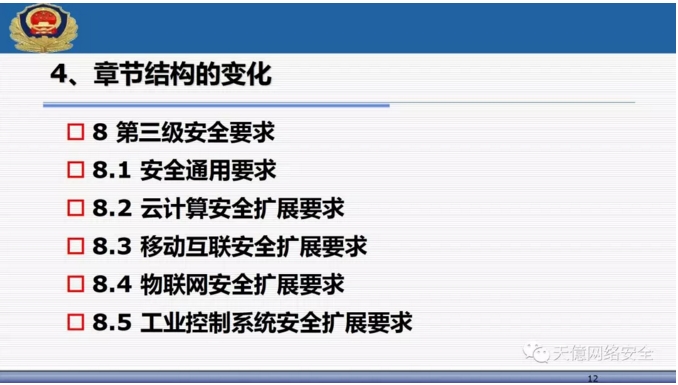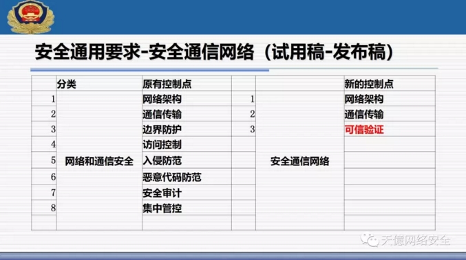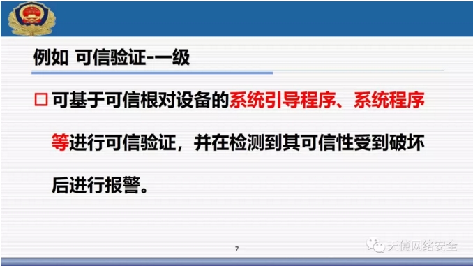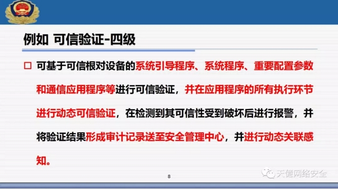 (3)新標(biāo)準(zhǔn)里把可信計(jì)算使用寫入了標(biāo)準(zhǔn)范圍,從一級(jí)開始到四級(jí)全部提出了可信驗(yàn)證空間。 ?